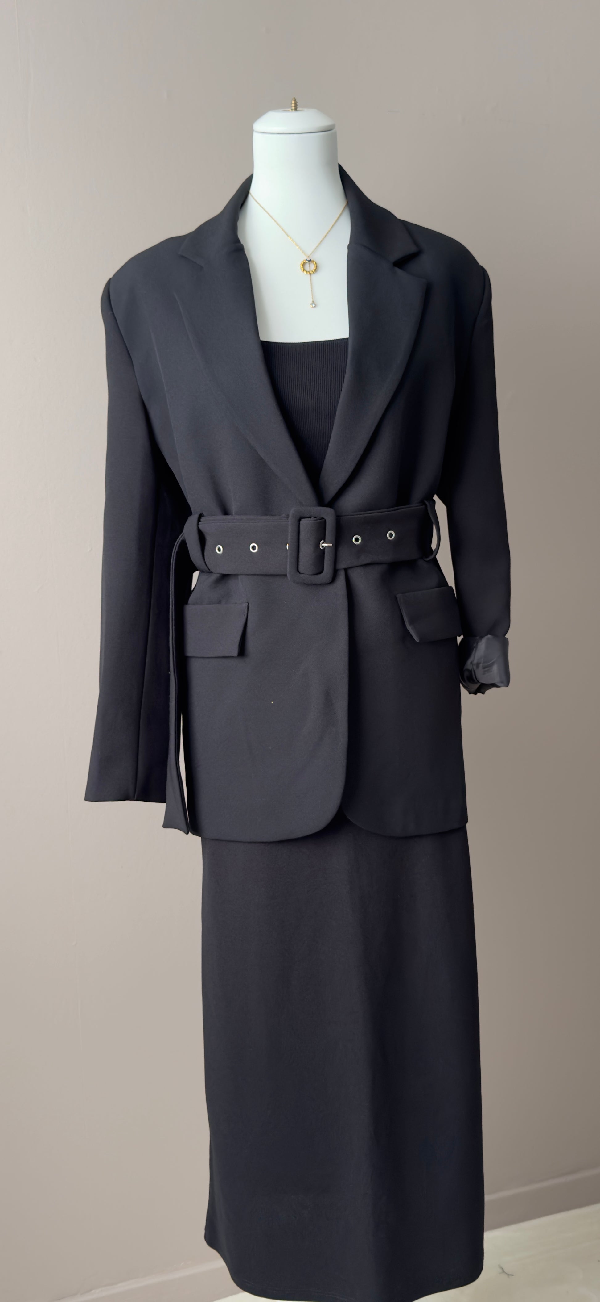BLAZER LARGE NOIR AVEC CEINTURE NON FIXE