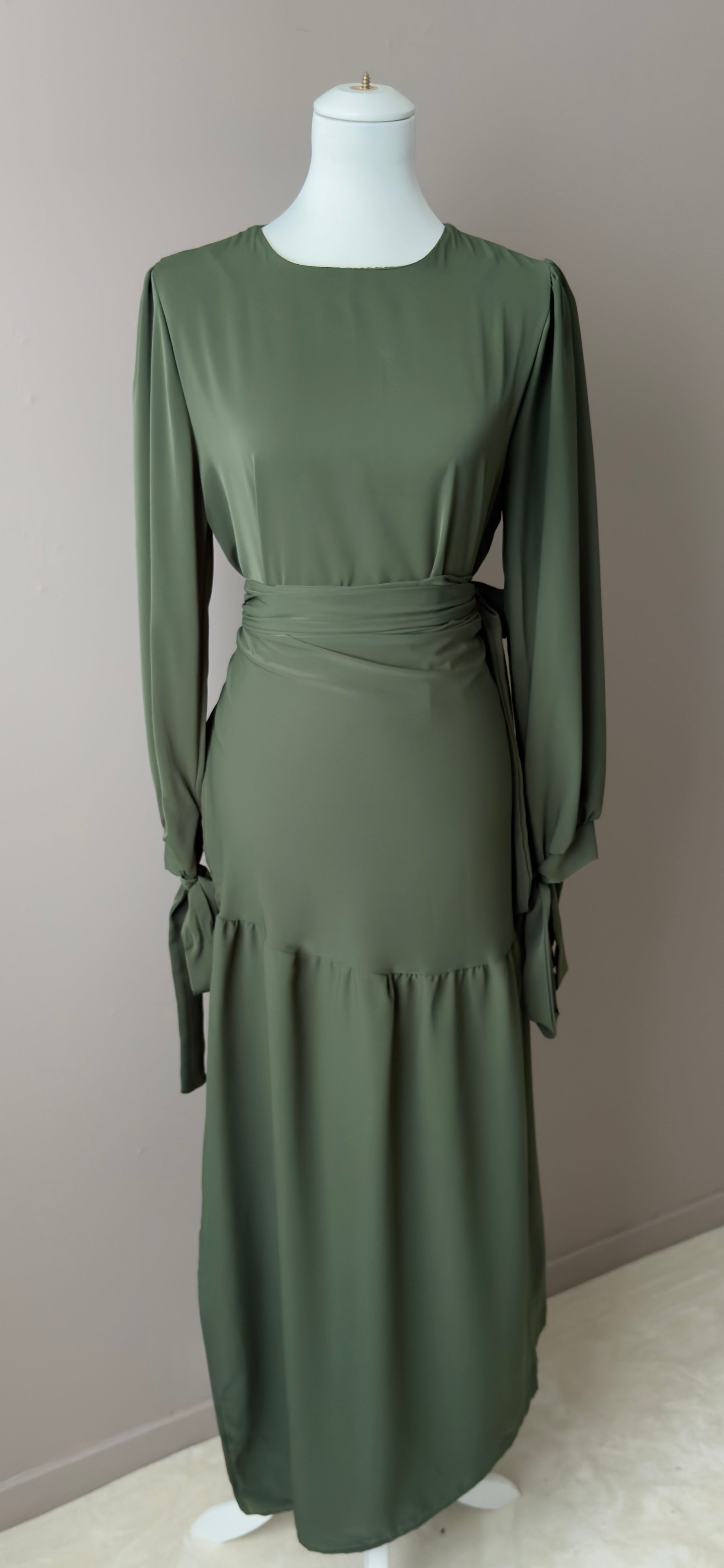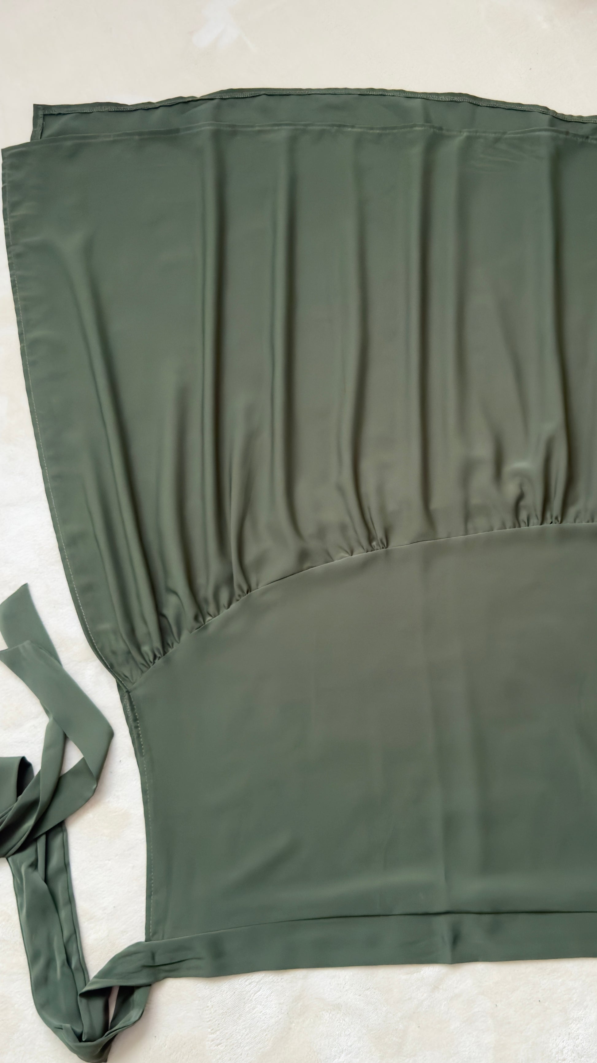 ENSEMBLE A JUPE DRAPEE ET MANCHES A LACETS