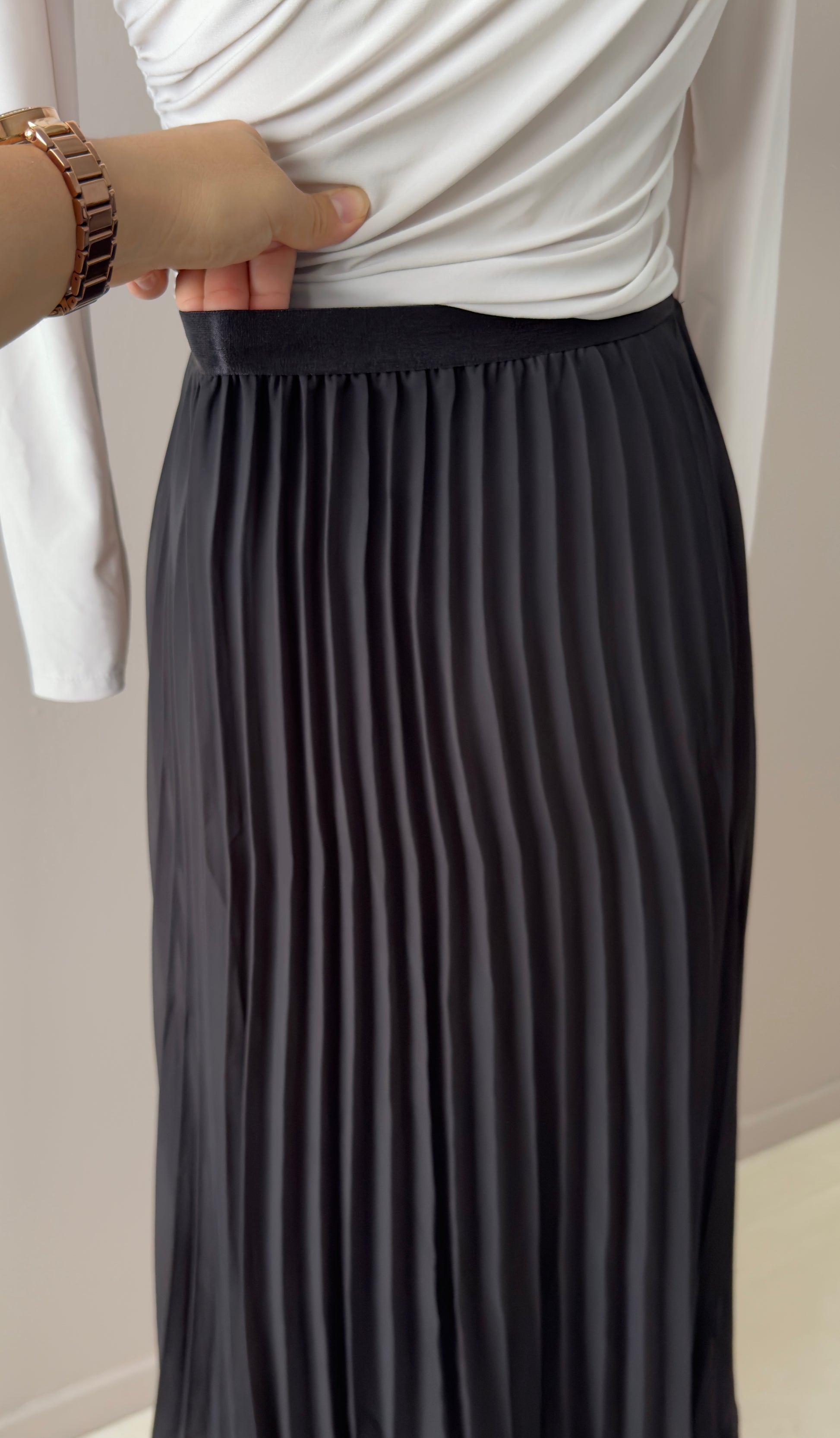 Sa taille élastiquée s'adapte parfaitement aux tailles standards jusqu'au 44, offrant une silhouette flatteuse sans compromis sur la praticité.