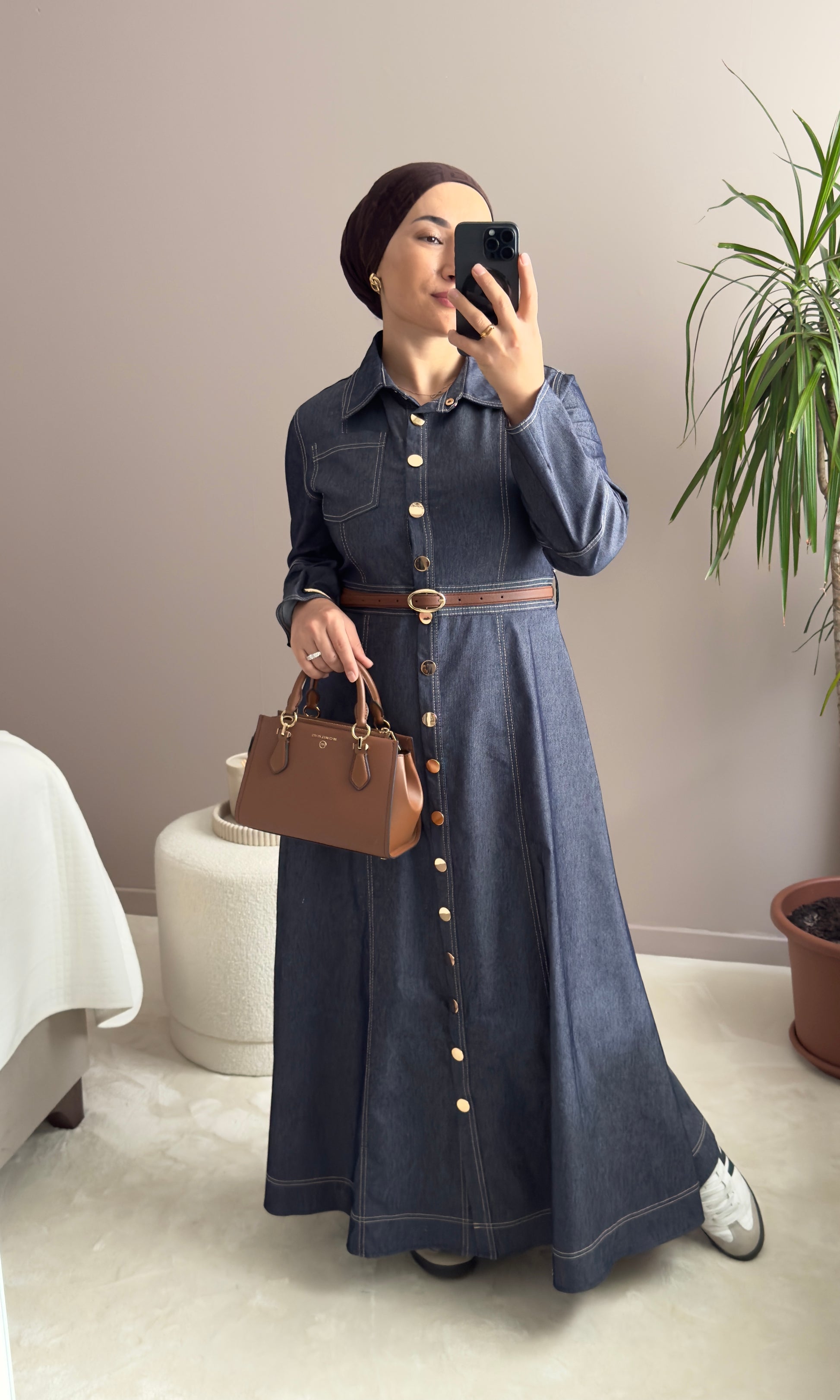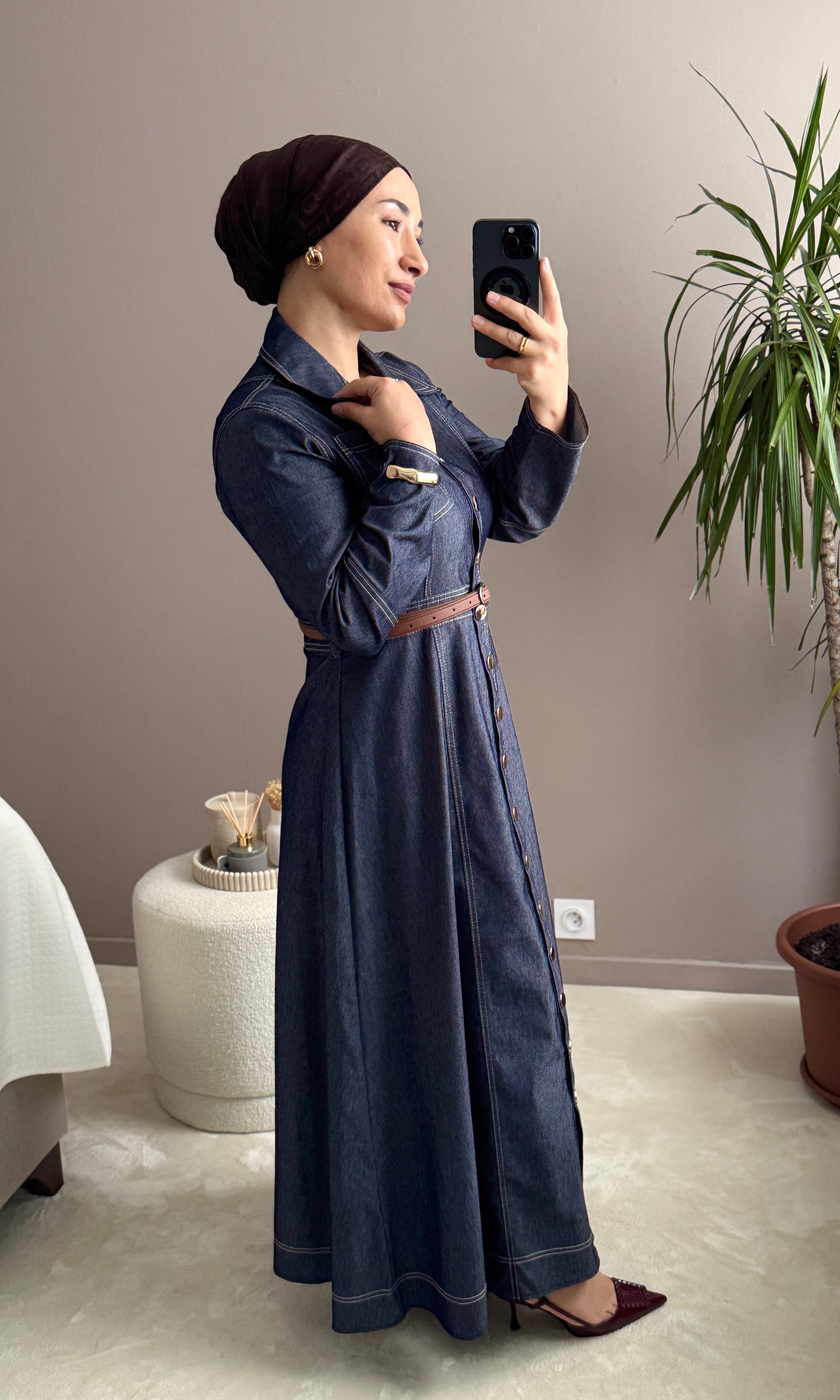ROBE LONGUE EN JEAN AVEC CEINTURE-KEMERLI UZUN KOT ELBISE