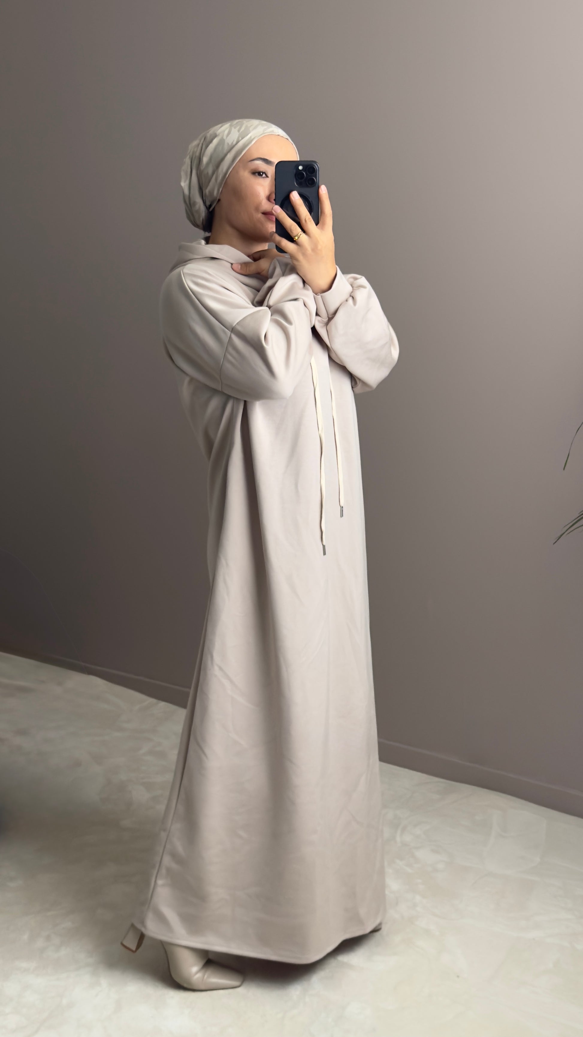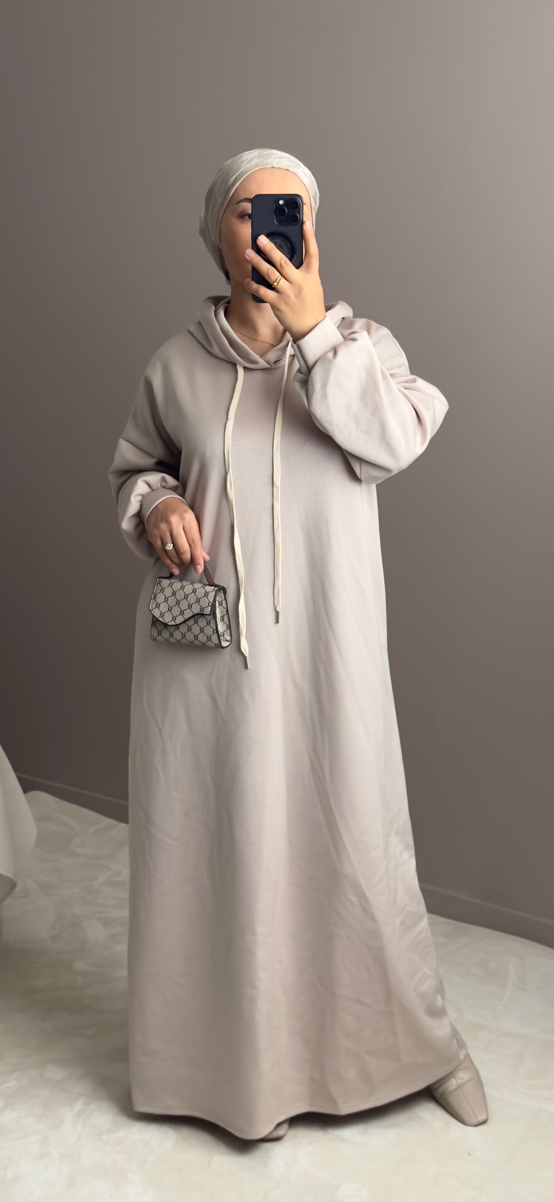 SWEAT LONG AVEC CAPUCHE BEIGE